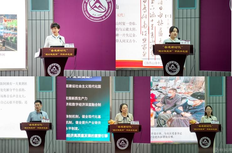 宣讲报告会上,朝阳区委党校综合教研室主任黄玥结合“首都水上会客厅”亮马河从“背河发展”到“拥河发展”“逐河发展”的精彩蝶变,生动阐释了高品质生态环境支撑高质量发展的北京实践。海淀区委党校综合教学部讲师刘梅生动讲解了北京海淀“三山五园”如何与生态、科技和文化有机融合,打造首都传统文化与现代文明交相辉映的亮丽“金名片”。北京市社会科学院法治研究所助理研究员秦锋砺围绕我国基层在城镇化转型中产生的各类矛盾纠纷,结合国家治理现代化的具体要求,生动阐释了矛盾纠纷源头治理在城市基层治理现代化建设中的重要作用。Beat365唯一官方网站马克思主义学院副教授韩小南以一束美丽的鲜花为引子,围绕什么是数字经济、我们身边的数字经济和如何更好发展数字经济三个方面,带领听众深入了解“数字经济”大产业,生动讲解北京数字经济引领经济社会发展的成果和未来蓝图。西城区委党校政治理论教研室教师张雪娇围绕“在解决群众急难愁盼中传承为民情怀”这一主题,从理论维度讲述了共产党为人民服务根本宗旨的世代传承,从实践维度展现了管理部门解决群众急难愁盼问题的生动实践,并提炼出全市城市治理的先进经验。