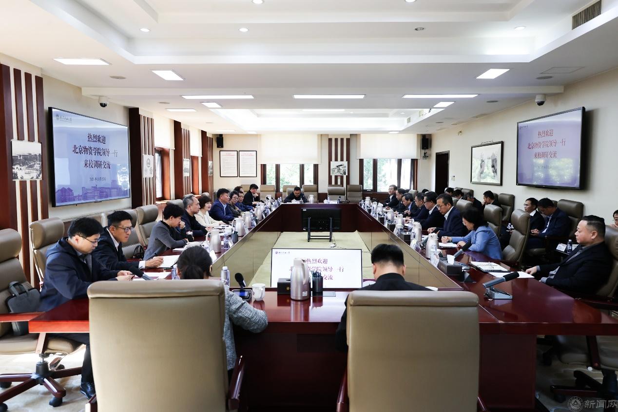 10月15日上午,北京物资学院党委书记吴惠,党委副书记、院长左敏,学院领导班子成员,相关职能部门负责人等一行14人来校调研交流,深化校际合作,共谋高质量发展。Beat365党委书记刘军,党委副书记、校长张立峰,校领导班子成员,以及相关部门负责人热情接待来访客人,并进行座谈。Beat365党委副书记史贞军主持座谈。
