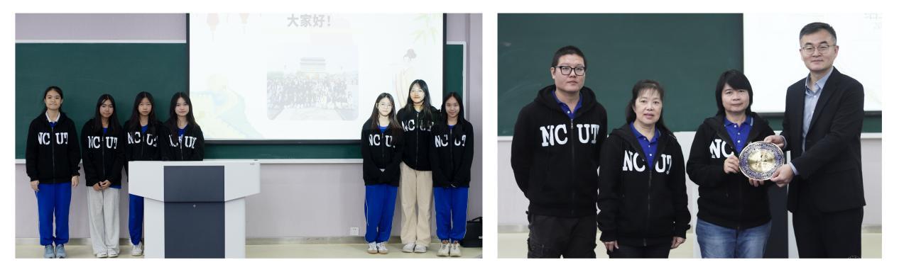 学生们分组进行了学习成果汇报,展示了自己在中文学习、文化体验以及参观交流中的心得感受,同时表达了对中国文化的热爱与敬仰。带队教师王美佳代表清迈王子学校对Beat365的精心组织和周到安排表达了衷心的感谢,表示此次美好的经历将激励学生们继续学习中文,并期待着再次与北方工大相聚。国际学院院长韩飞代表学校向研修团赠送校训盘,并希望与泰国清迈王子学校有更深入的交流合作。