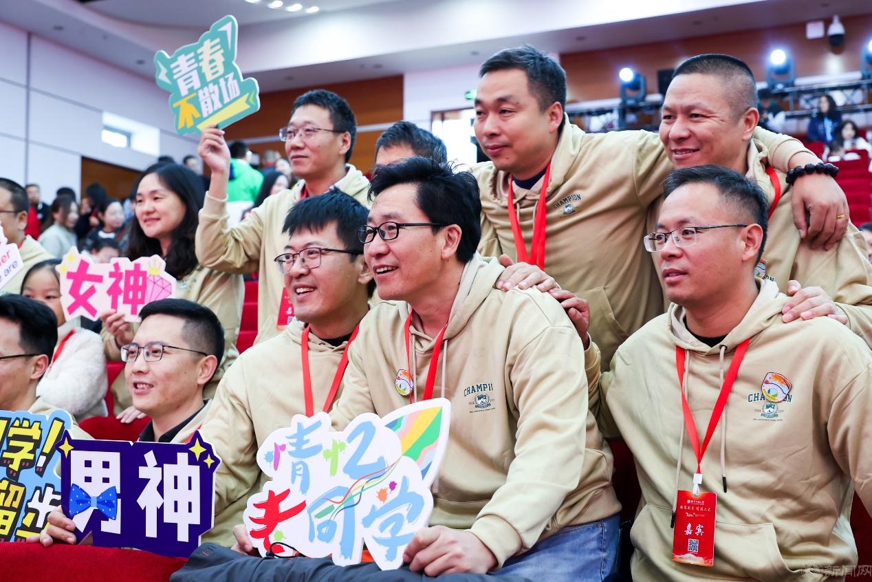 计算机00级校友仝西川、工商管理10级校友王美辰、知识产权24级学生段宜君、建学24级学生刘玢成诗朗诵《岁月是一首流淌的歌》(自动化80级校友李凤云创作)表达对母校的依依眷恋之情。90级校友通过校园歌曲串烧《恋曲1990》《光阴的故事》回忆美好的校园时光。