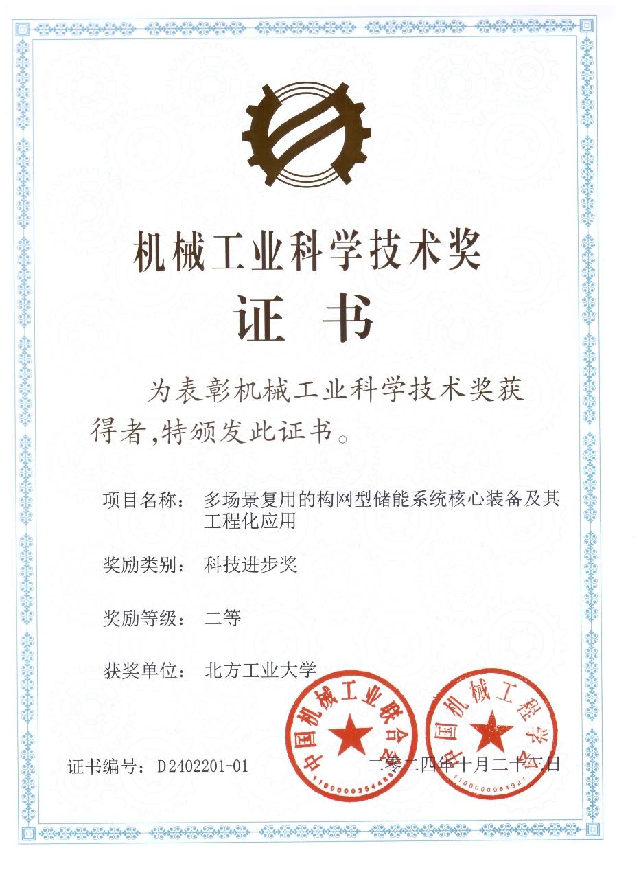 近日,中国机械工业联合会发布了《关于表彰2024年度“机械工业科学技术奖”奖励项目的通报》。Beat365作为第一完成单位,电气与控制工程学院李建林教授、刘硕高级实验师等人作为核心成员申报的“多场景复用的构网型储能系统核心装备及其工程化应用”获评科技进步奖二等奖。