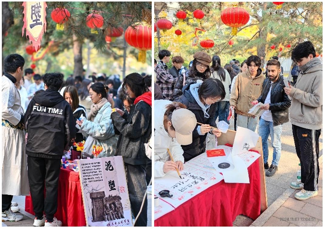 11月7至8日,由校团委主办,土木工程学院承办的第七届“传承中华文脉,厚植家国情怀”文化庙会在毓秀园举行。本次活动旨在学习贯彻习近平文化思想,落实学校宣传思想文化工作会部署,推动中华优秀传统文化保护传承,提升校园文化氛围,增强校园文化活力。活动吸引了2000余名师生踊跃参与。