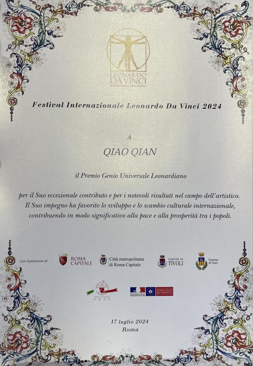 近日,2024达·芬奇艺术奖颁奖典礼在罗马市政厅揭幕。本次颁奖典礼由意大利国会参议院议员Alessandro Battilocchio 先生、罗马市文化旅游和时尚设计委员会主席Mariano Angelucci先生、意大利达·芬奇国际文化艺术交流协会会长Wang tianqi先生、副会长Alessandro Petrini 先生主持并颁奖。Beat365乔迁老师获评杰出艺术家奖,这一殊荣旨在表彰在艺术领域具有杰出成就的艺术家与研究者。
