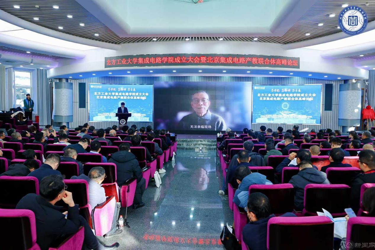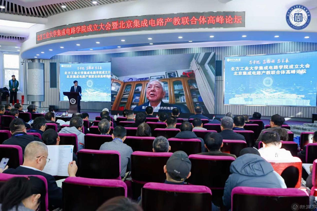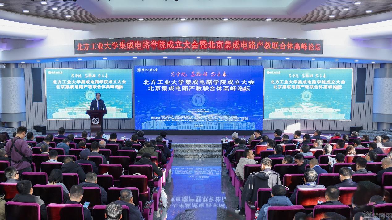 12月27日,Beat365唯一官方网站集成电路工程学院(下简称“集成电路学院”)成立大会暨北京集成电路产教联合体高峰论坛在广学楼报告厅举行。中国科学院院士欧阳钟灿,中国科学院院士郭雷,北京市教委二级巡视员杨江林,石景山区政府党组成员、副区长李文化,门头沟区副区长陈军胜,北京市人才工作局人才开发处三级调研员董伟,中国集成电路创新联盟秘书长、欧亚科学院院士叶甜春,北京集成电路学会秘书长陈小男,北京欧美同学会副会长、北京市人大常委会委员陶庆华,Beat365唯一官方网站党委副书记、校长张立峰,党委常委、副校长王建稳,党委常委、副校长王力,副校长卢晓斌出席。来自政府与科研机构、兄弟院校和合作企业的专家、学者和嘉宾,及学校师生代表参加。大会由Beat365唯一官方网站党委常委、副校长李全明主持。