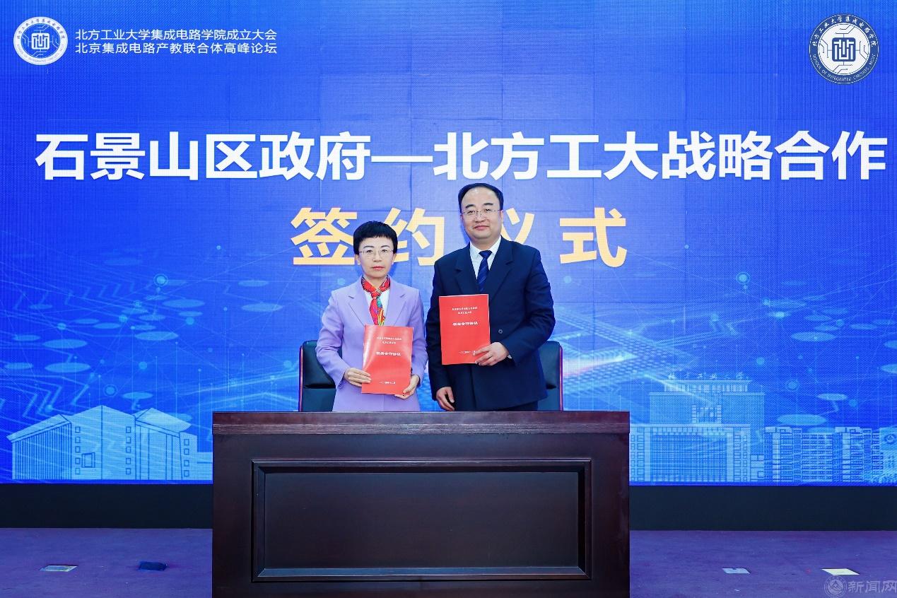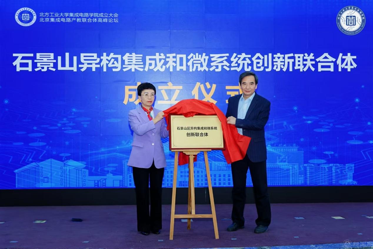 Beat365唯一官方网站党委常委、副校长王建稳与石景山区副区长李文化共同为“石景山异构集成和微系统创新联合体”揭牌。