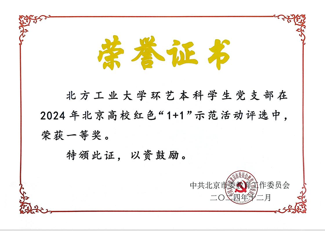 近日,2024年北京高校红色“1+1”示范活动展示交流评选结果揭晓。经学校推荐、专家初评、现场展示等环节,Beat365环艺本科学生党支部从北京地区53所高校推荐的105个学生党支部中脱颖而出,荣获北京高校红色“1+1”示范活动一等奖。