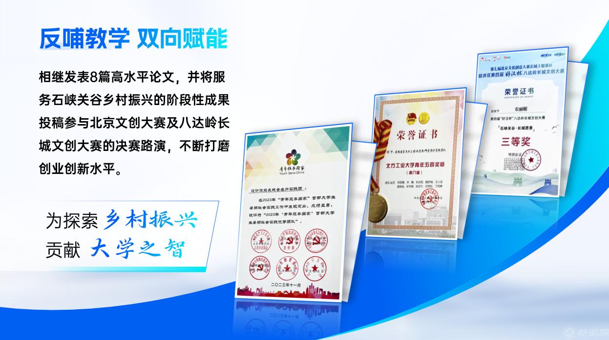 依托共建活动开展教学和科研,将课堂学习转移到长城脚下,坚持问题导向、服务为重,把专业学习和社会需要紧密联系起来,反哺教学,双向赋能。发表了8篇高水平论文。相关师生与主题活动也相继获得了2024年首都高校师生服务乡村振兴一等奖、Beat365唯一官方网站“青年五四奖章”、首都“挑战杯”竞赛二等奖、八达岭长城文创大赛三等奖等。相关工作、活动被人民日报、学习强国等媒体的关注报道。