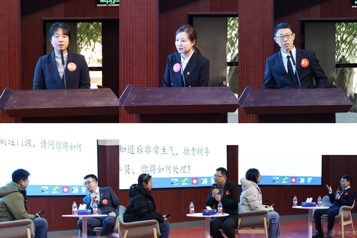经过前期初赛筛选,6名辅导员参加了决赛。参赛选手根据赛前抽签顺序依次上台,分别完成“案例研讨”和“谈心谈话”两个环节的比赛,内容涵盖了思想教育、学业帮扶、心理健康、宿舍管理、人际关系、求职择业、电信网络诈骗、学生干部培养、校园危机事件应对等各个方面。案例研讨采用“两人一组、主问主答”的方式开展,主要考察辅导员综合运用理论分析问题、研判问题、解决问题、应急处突等能力。谈心谈话通过情景再现的形式,由参赛选手与学生进行面对面的深入交流,主要考察辅导员对学生特点、学生成长规律的了解把握程度,对学生的教育引导能力、解决思想困惑和实际问题的能力等。