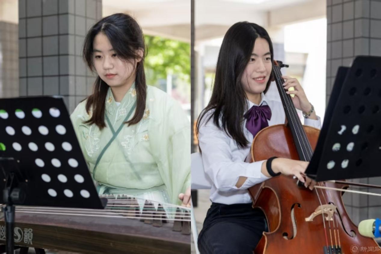 活动现场伴随着学生演奏的古筝名曲《浏阳河》《小小竹排》《渔舟唱晚》与大提琴演奏《爱的致意》《第三号小步舞曲》《巴赫G大调第一组曲》等曲目的悠扬旋律。
