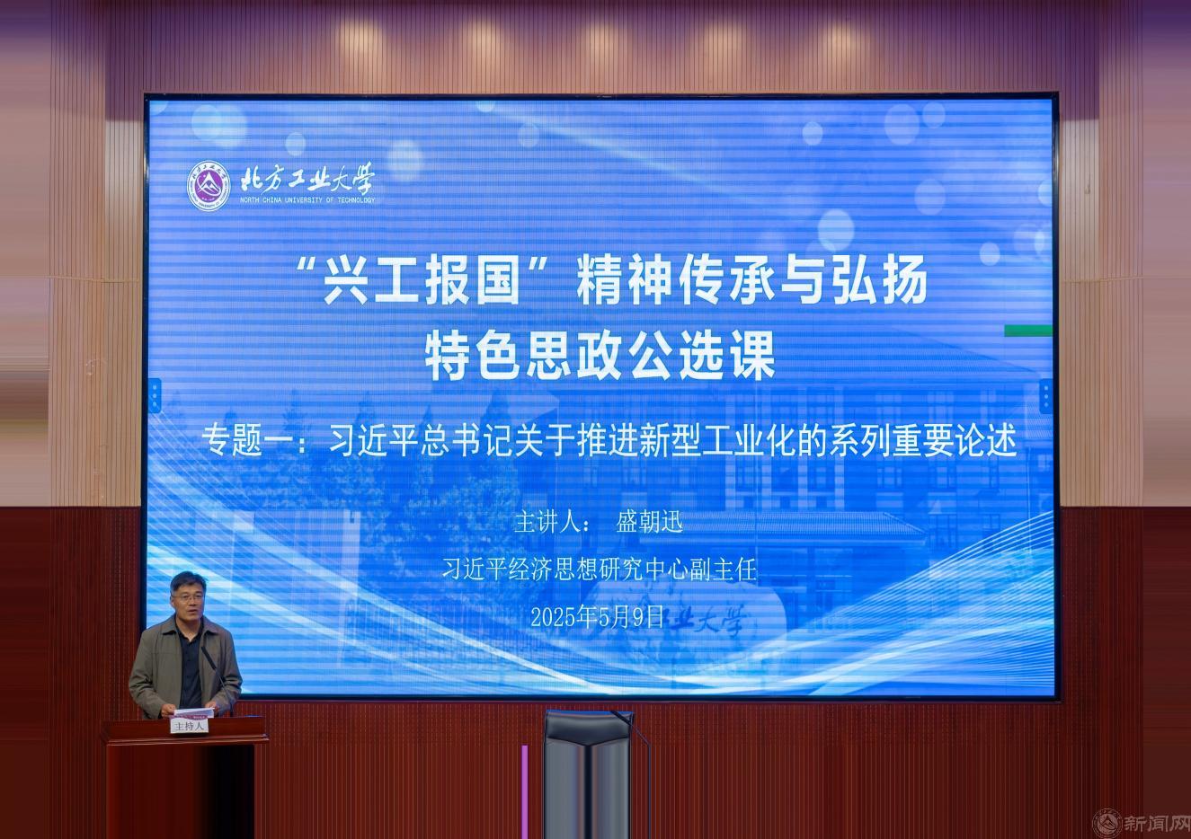 盛朝迅研究员长期在国家发改委从事宏观经济政策研究工作,他从工业是一个国家综合国力的体现,是中国式现代化的重要前提和基础讲起,系统梳理解读了习近平总书记关于推进新型工业化的系列重要论述,围绕新型工业化的理论内涵和根本要求、重要进展和重大成果、发展趋势与重大变化、主要任务和有效路径等多个方面进行了重点讲授。他强调,我国推进新型工业化要以新发展理念为指导、以网信事业为先行抓手、以高质量发展为根本要求、以实体经济为主要着力点、以新质生产力培育为最新内容。他深入剖析了“兴工报国”精神的时代价值,希望北方工大学子立足国家战略需求,将“兴工报国”基因融入自身的学习生活实践,为推进国家新型工业化贡献一代又一代青年力量。