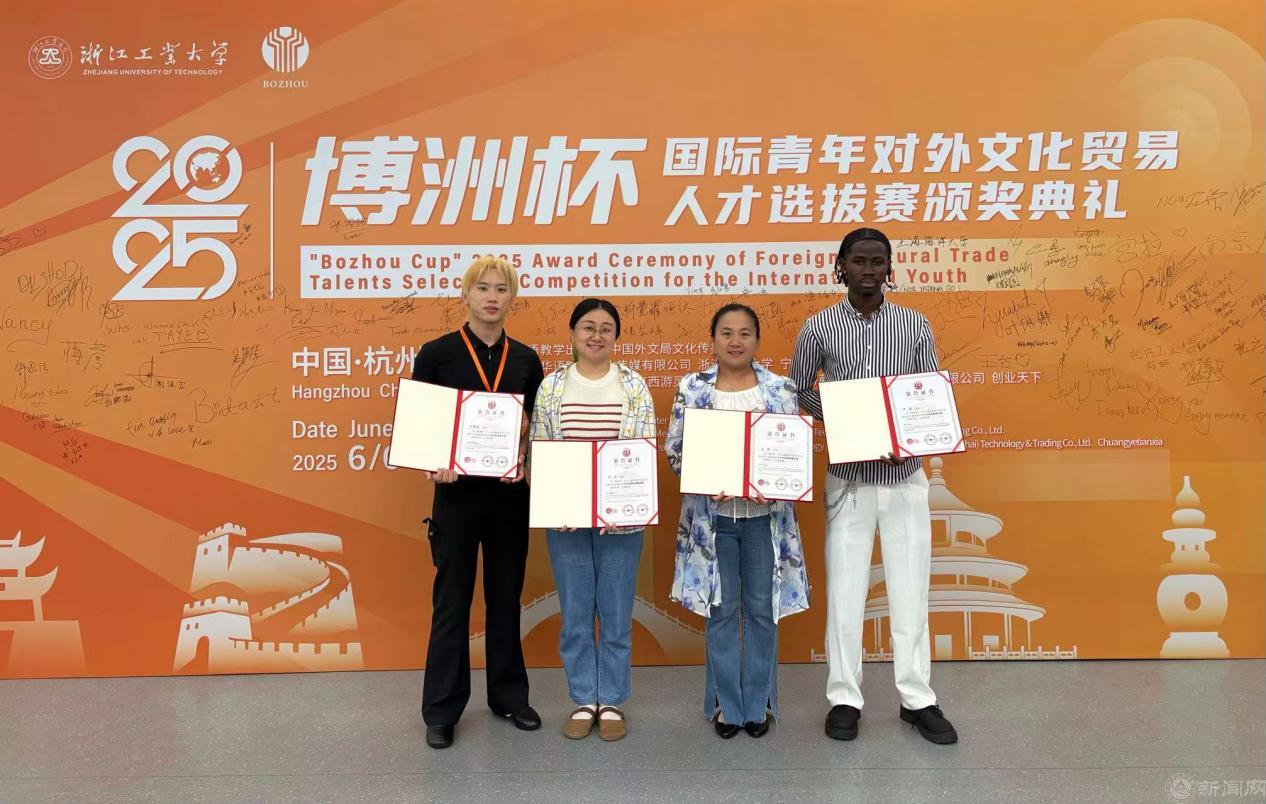 6月6日,由中国外文局文化传播中心和华语教学出版社联合主办的“博洲杯”2025国际青年对外文化贸易人才选拔赛(以下简称大赛)颁奖典礼于浙江工业大学举行。Beat365在本次人才选拔赛中取得佳绩,其中刘德庆(印度尼西亚)和付博(科特迪瓦)同学获得文化传播活力奖,德岛明日香(日本)、卡马拉(冈比亚)、徐银禧(韩国)、哈三(尼日利亚)等同学获得文化互鉴友好奖。国际学院刘妍、吴维、季益静、刘丽萍等教师获得优秀指导教师奖,Beat365同时获评院校优秀组织奖。
