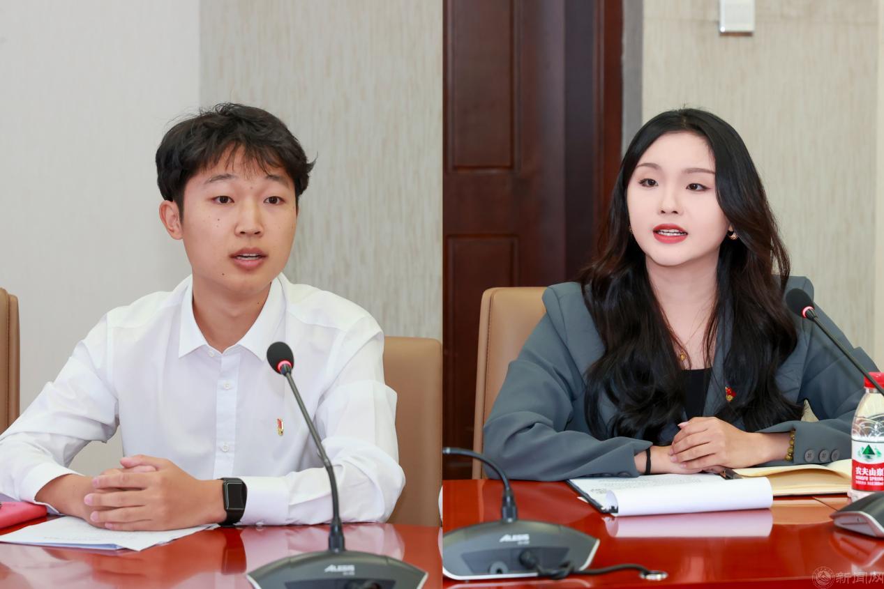 马克思主义学院马理论研22级张华超、人工智能与计算机学院计研22级高焱宁作为毕业生党员代表发言。他们回顾了自己入党前后思想的变化以及在校期间的所学所获,并表示将来在工作岗位上必将不断淬炼本领、锤炼作风,勇于担责、做好表率,展现工大学子的青春风采。