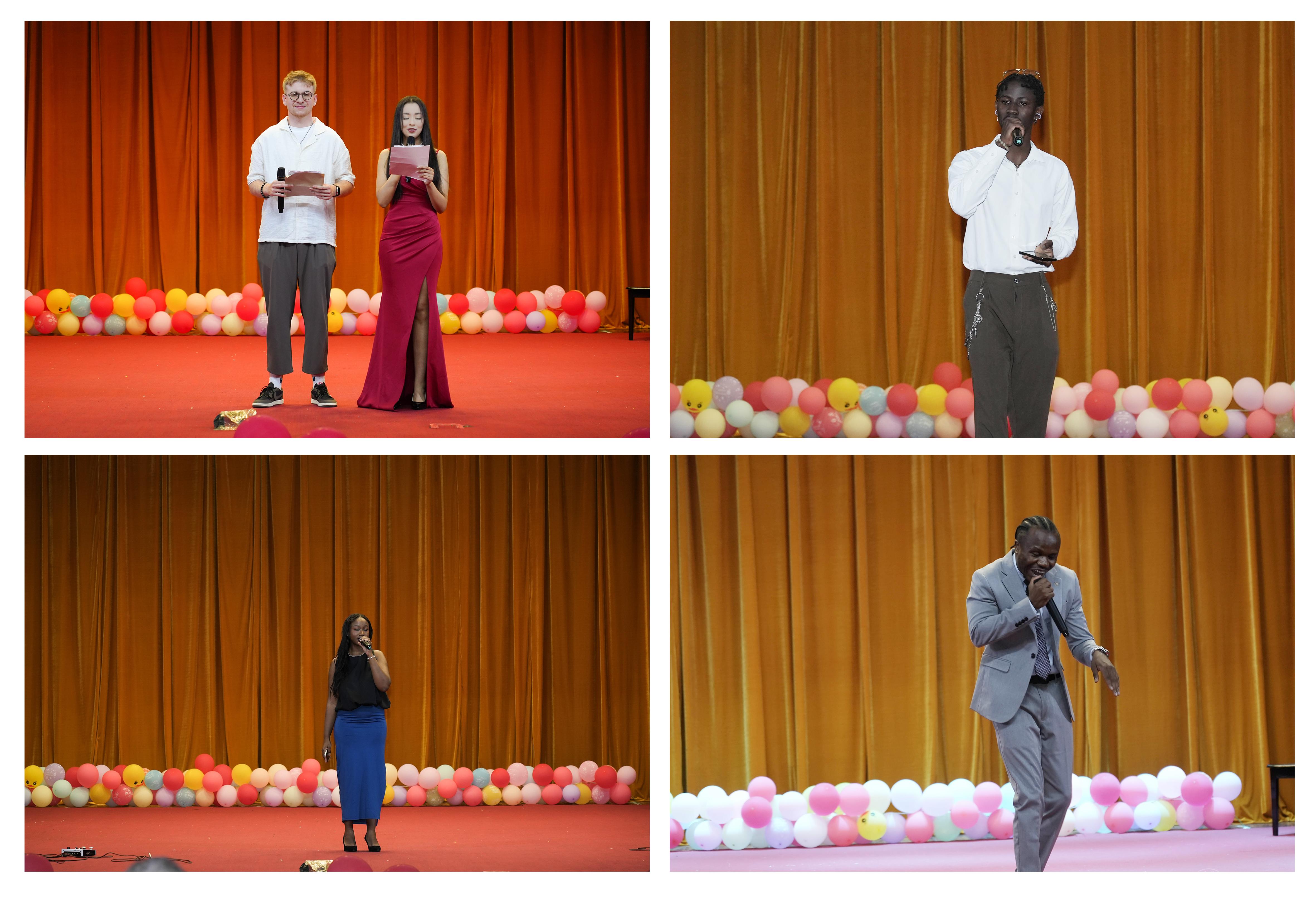Seven乐队以《Phoenix + 火车驶向云外,梦安魂于九霄》点燃现场;莱索托留学生莫琳献唱的《会开花的云》,以轻盈歌声编织留学生活的美好愿景;刚果(金)留学生扎瓦尼带来 Rap《请注意倒车》,节奏里满是青春张力;中国学生艾比拜以民族舞《为你而来》,展现传统艺术魅力;刚果(金)留学生达达与辛西娅合唱《Memories》承载留学珍贵片段;科特迪瓦留学生付博演唱的《朋友》传递出对跨国友谊的珍视与相伴同行的感动;日本留学生德岛明日香书法表演《前程似锦》为毕业生送上真挚祝福;孟加拉留学生穆阳钢琴独奏《童年》,以灵动琴音勾勒留学生活里那些纯粹;最后,刚果(金)留学生辛西娅以一首《Congratulations》唱响毕业喜悦。