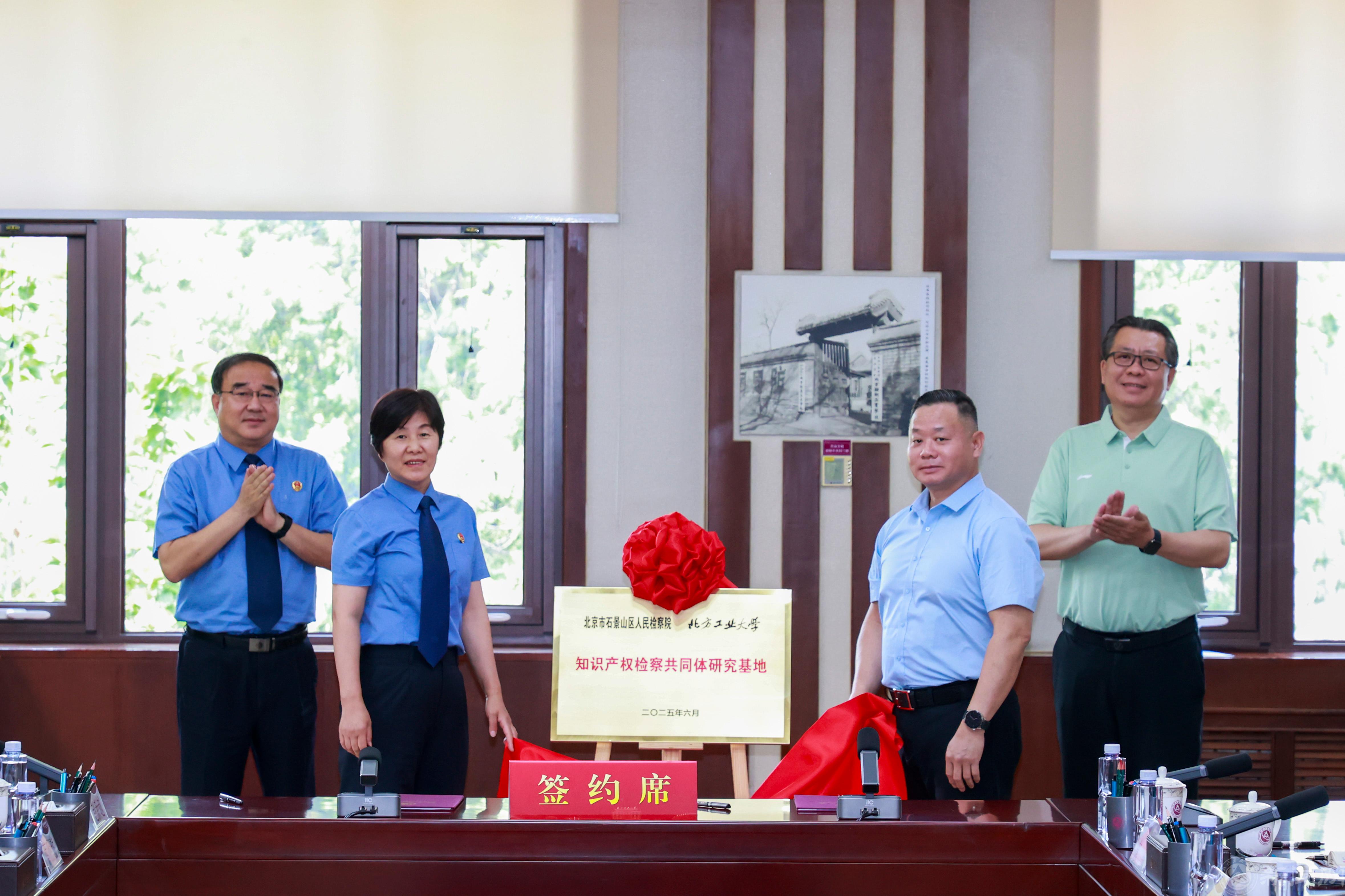 党组成员、副检察长杨秀莉与副校长卢晓斌为“知识产权检察共同体研究基地”揭牌。