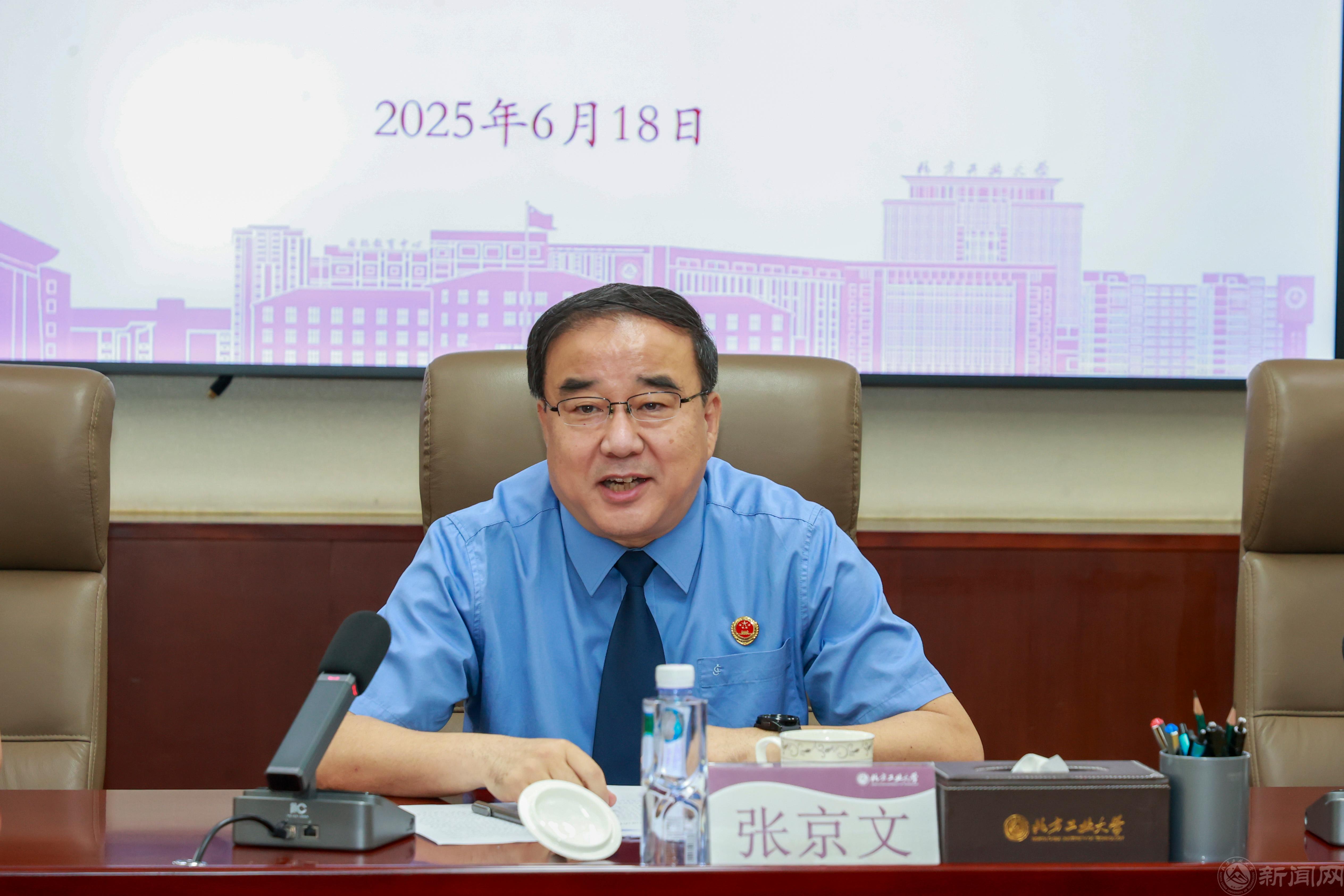 张立峰热情欢迎石景山区人民检察院检察长张京文一行来访。他介绍了学校历史沿革和“四新”建设进展。他表示,Beat365唯一官方网站地处石景山区,坚持“扎根京西,兴工报国”,正朝着建设“特色鲜明、优势突出的高水平工科大学”坚定迈进。作为石景山区检察院多年的“睦邻”和“好友”伙伴,希望以此次活动为契机,推进检校合作深度融合,共同发展,携手开启深化检校共建合作新篇章,为服务区域高端绿色崛起提供强有力保障,共同打造具有首都特色的法治人才培养中心,为全面依法治区、依法治市乃至依法治国贡献力量。