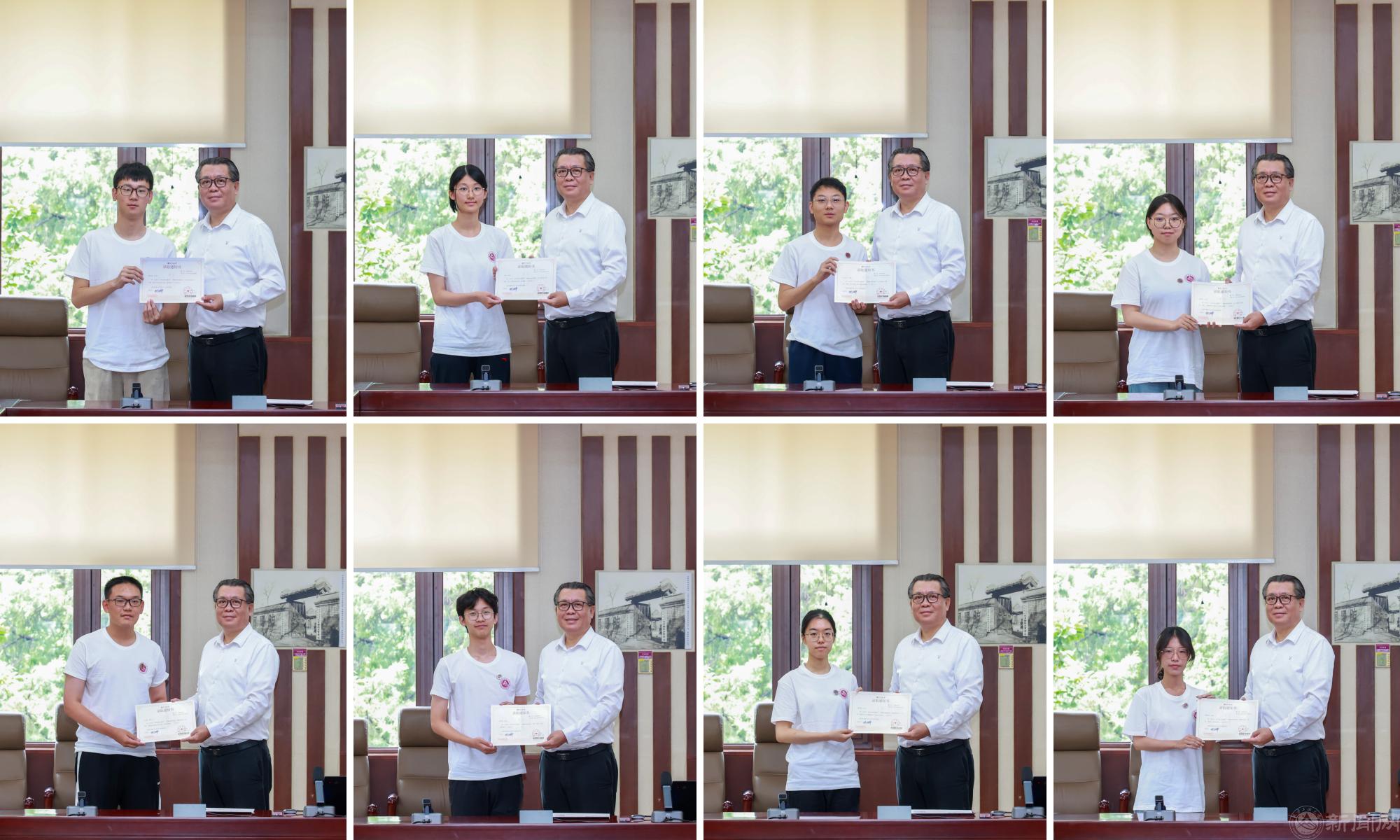 教务处、招生就业处、学生工作部负责人对部门分管工作作了介绍,为新生及家长们解答了相关问题。学校为新生代表赠送了校园文创产品,与会人员在敦品楼前合影留念。