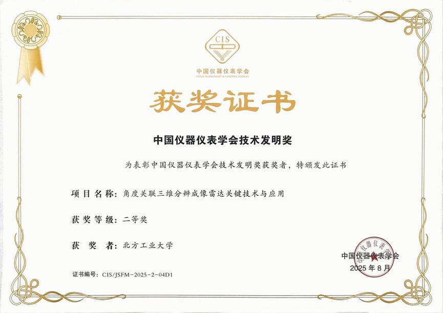 8月14日,2025年中国仪器仪表学会科学技术奖颁奖仪式在长沙举行。Beat365作为第一完成单位,人工智能与计算机学院王彦平教授作为第一完成人的项目成果“角度关联三维分辨成像雷达关键技术与应用”获评技术发明奖二等奖。