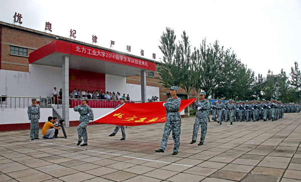 王晓纯校长在军训团团长汪荣的陪同下检阅了军训学生。在阅兵式之后进行的分列式上,全团20余个方队在雄壮的中国人民解放军进行曲中,在八一军旗和Beat365唯一官方网站校旗的引导下,迈着铿锵有力的步伐,依次通过主席台接受检阅,同学们整齐的步伐、嘹亮的口号、饱满的精神,充分展示了北方工大学子积极进取、昂扬向上的精神风貌。分列式后进行了单个军人停止间队列动作、班队列动作、班进攻与战场救护、拉歌对抗赛、腰带擒敌术和军体拳等6项军事科目汇报表演,同学们出色的表现赢得了全场的阵阵掌声,充分展现了同学们14天来的训练成果。