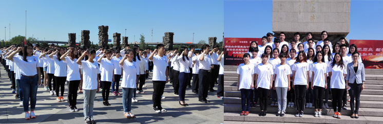 活动在庄严的国歌声中开始,同学们在中国人民抗日战争纪念碑前向抗日战争的先烈们默哀致敬,傅振邦等领导同志向纪念碑敬献花篮。随后,全体人员庄严宣誓:“勿忘国耻,振兴中华,铭记历史,缅怀先烈,珍爱和平,开创未来,紧密团结在以习近平同志为总书记的党中央周围,为实现‘两个一百年’奋斗目标、实现中华民族伟大复兴的中国梦而奋斗!”