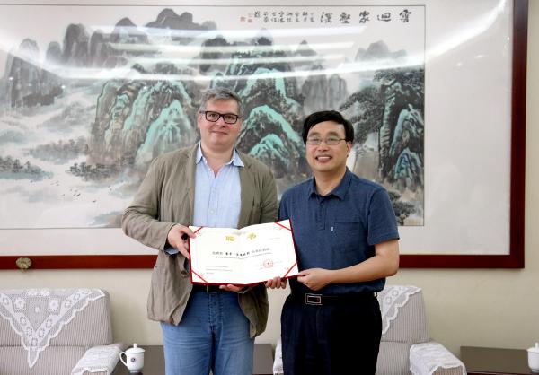 6月29日,罗学科副校长会见了来访的意大利米兰理工大学建筑学院中国项目专员Luca Fabris博士,双方就开展外培计划事宜进行了深入探讨。罗学科副校长感谢米兰理工大学建筑学院及Fabris博士对Beat365教育教学工作的长期支持和配合,并向Fabris博士颁发了客座教授证书。国际合作与交流处处长熊佳全、建筑与艺术学院党委书记张勃、风景园林专业责任教师傅凡等参加了会谈。