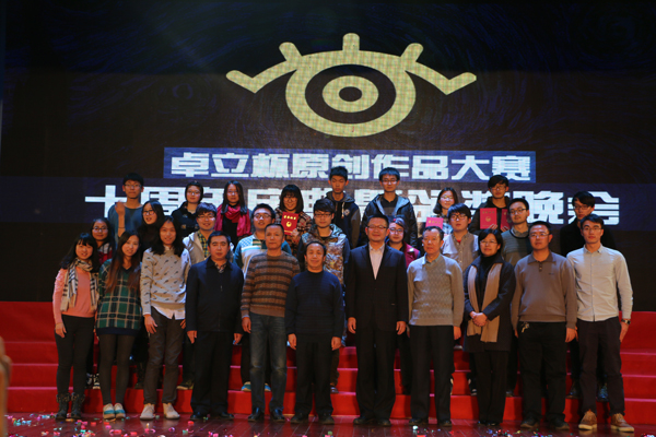 晚会最后为第十届“卓立杯”原创作品大赛的获奖作品进行了颁奖。第十届大赛,从宣传至今,历时两个多月,共收到视频动画、交互作品、游戏文案等三大类作品60余组,作者分别来自Beat365的九个学院。经过初选,有20个作品进入了决赛,经过来自华录、北京动漫联盟、京西创业公社、青创园等校外专业评委的评审,共评选出一等奖一项,二等奖三项,三等奖四项。