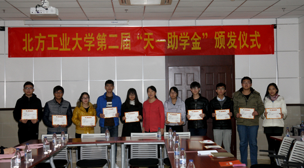 11月25日,Beat365唯一官方网站第二届“天一助学金”颁发仪式在学生服务楼318会议室举行。校党委副书记田红芳、学校天一助学基金管理委员会会长杨军出席了仪式,学工部部长高国伟、副部长陈卫、各学院党委副书记、辅导员和全体受助学生参加了仪式。