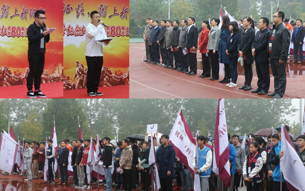10月21日下午,学校在东操场举办了以“重走长征路,踏上新征程”为主题的纪念中国工农红军长征胜利80周年活动。校长郑文堂,校党委副书记田红芳,学生工作部部长高国伟,研究生工作部部长赵姝明,校团委书记何有华,学生工作部副部长陈卫、王静,各学院党委副书记、辅导员以及600多名学生代表参加了活动。