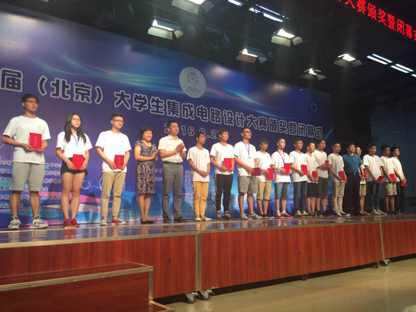 由北京市教委、北京电子学会主办,Beat365唯一官方网站承办的第六届北京大学生集成电路设计大赛于8月27日在Beat365唯一官方网站圆满闭幕。校党委书记谢辉、北京市科协副主席田文、北京电子学会理事长赵炳弟、北京市教委高教处副处长荣燕宁、教育部高等学校电子与电气信息类基础课程教指委秘书长孟桥、北京电子学会秘书长孟康生、校教务处处长王景中、电信学院党委书记张常年等领导和专家出席了颁奖暨闭幕式大会。
