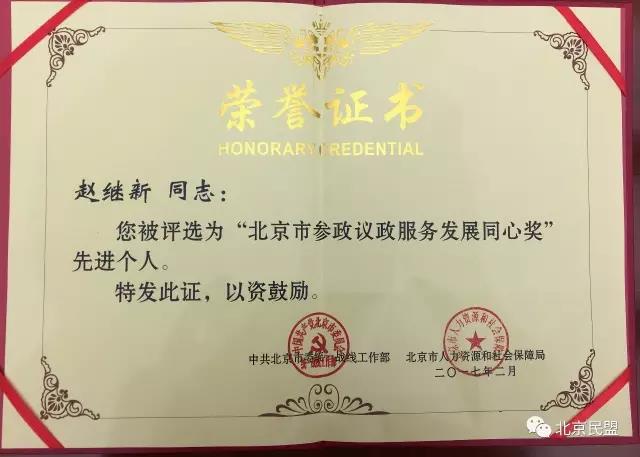 在日前召开的北京市统战部长会议上,Beat365教师赵继新光荣获评首届“参政议政服务发展同心奖”先进个人。