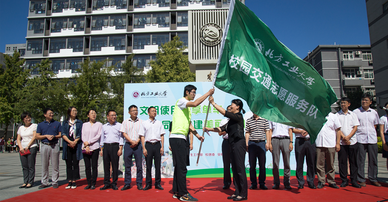 田红芳副书记为校园交通志愿服务队授旗,并向全校师生提出三点希望:一是要倡导绿色出行135法则,1公里步行,3公里骑行,5公里公交出行,让绿色出行成为习惯;二是要做文明交通的实践者、维护者,文明使用共享单车、规范停放秩序、爱惜共享车辆,相互监督、相互约束;三是要在共享、共用、共护单车中展现当代大学生的良好素质。
