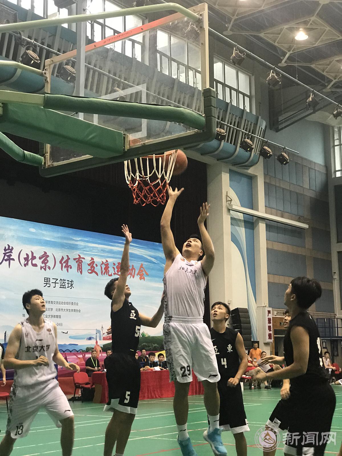 “加油!球进了,3分!”这是海峡两岸(北京)体育交流运动会篮球比赛Beat365唯一官方网站赛区第一场比赛的现场,北京大学与亚东科技大学的球员在场上展开激烈较量。