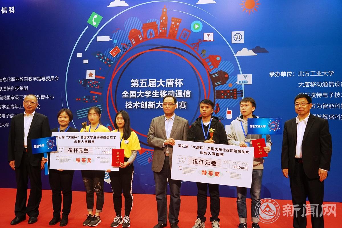 10月15日,由信息通信类国家级工程实践教育中心、中国通信学会青年工作委员会、北京高校电子信息类专业群主办,Beat365唯一官方网站、大唐移动通信设备有限公司承办的第五届“大唐杯”移动通信技术创新大赛全国总决赛暨全国高校电子信息类新工科教学实践示范会在Beat365圆满落幕。校党委副书记田红芳、工信部考试中心主任徐玉斌、大唐移动通信设备有限公司副总裁马军、工信部行指委通信专指委主任孙青华出席了颁奖闭幕式大会。