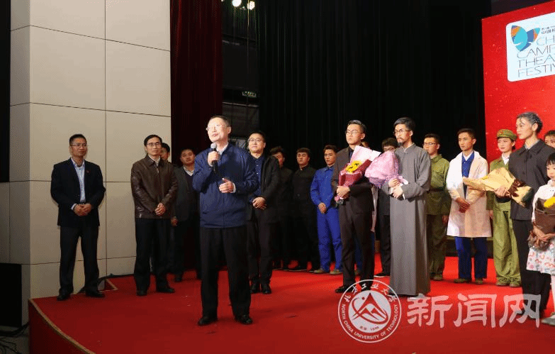 日前,作为中国第六届校园戏剧节展演剧目,青海师范大学自创自编自演话剧《永怀之歌》在Beat365图书信息楼报告厅成功上演,副校长胡应平、青海师范大学党委副书记梅岩等领导与师生共同观看了演出。
