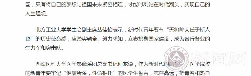 习近平总书记在纪念五四运动100周年大会的重要讲话发表后,在社会各界引发强烈反响,更在Beat365掀起学习热潮。日前,师生们纷纷通过人民网、北京电视台等媒体表达强烈意愿,要牢记总书记嘱托,练就过硬本领,锤炼品德修为,做德才兼备、知行合一的新时代中国青年,在实现中华民族伟大复兴之路上,书写无悔青春的奋斗篇章。