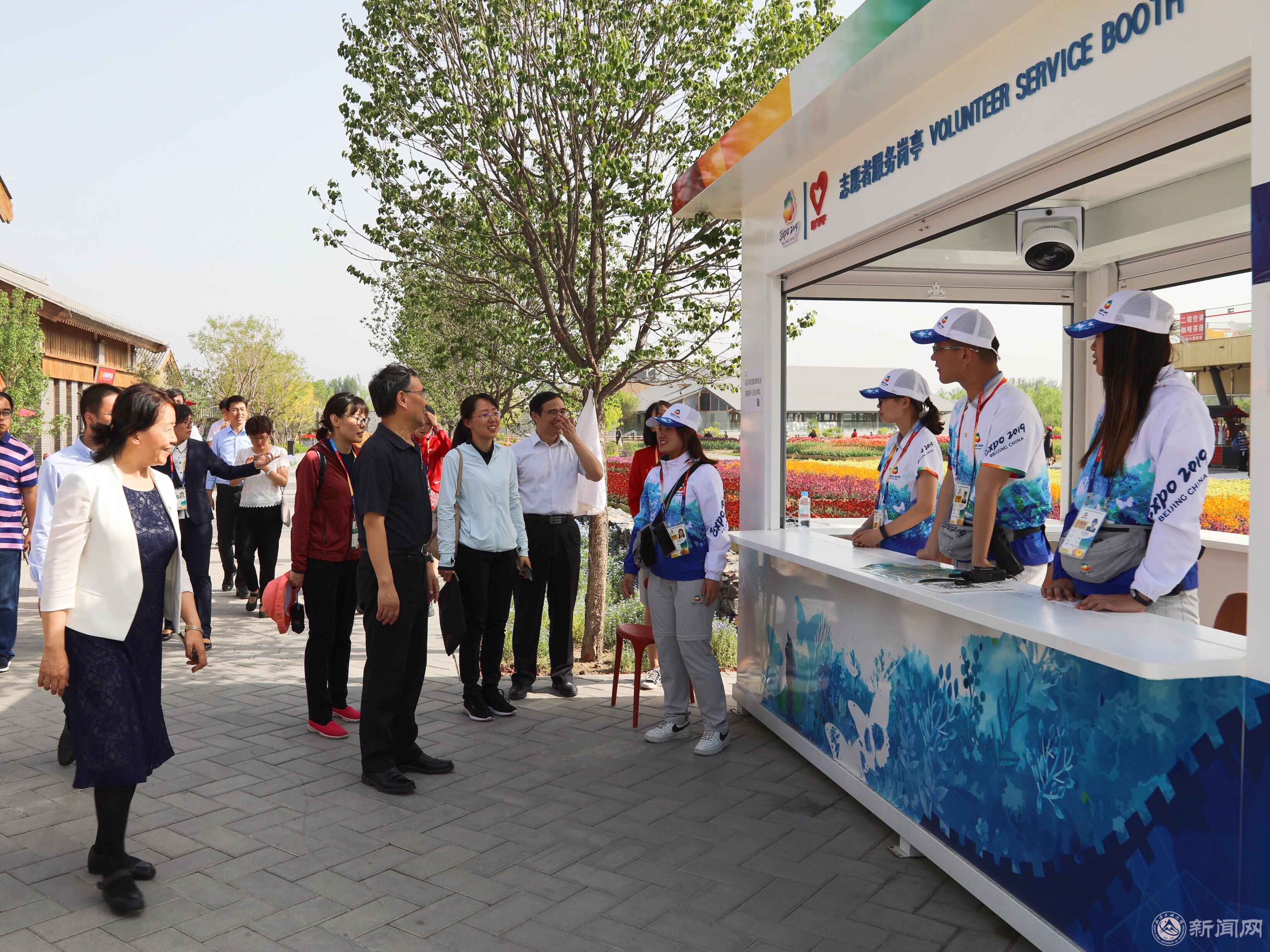 5月16日,校党委书记郑文堂、副书记田红芳以及相关职能部门负责人和各学院党委副书记等一行来到北京世界园艺博览会看望慰问Beat365志愿者。世园局总经济师林晋文、世园局志愿者管理部部长代兵陪同慰问。