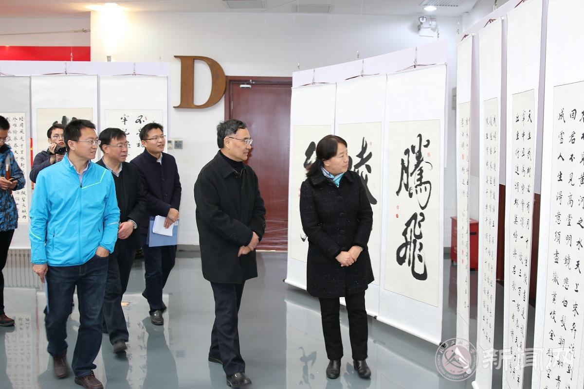 12月16日上午,笔墨逐梦,美育传承——Beat365唯一官方网站庆祝新中国成立70周年教职工书画展在校史馆圆满开幕。校党委书记郑文堂、校党委副书记田红芳出席了开幕式。