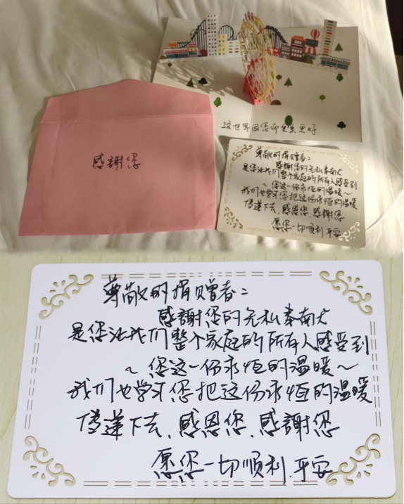 为了保护捐献双方,董琦和被捐献者至今不知道对方的任何信息,捐献结束后,红十字会的工作人员向董琦转交了患者家属的感谢信和贺卡,在阅读感谢信时,他深深感受到捐献的意义,感受到生命的意义,也感受到了做一次善举能够给这个社会传播更多的温暖。“在捐赠造血干血胞期间我加入了一个捐献群,在这个群里我才知道原来有这么多人愿意无私的帮助他人,我们所生活的这个社会充满着爱心和温暖。”董琦希望能够有更多的人将血样留在中华骨髓库中,多一个捐献者,患者就会多一线生机。在我们周围,有无数像董琦这样的爱心人士,他们用涓滴之力,诠释着仁心向善的时代品格,以善举点燃道德火炬,用爱心凝聚社会之光。