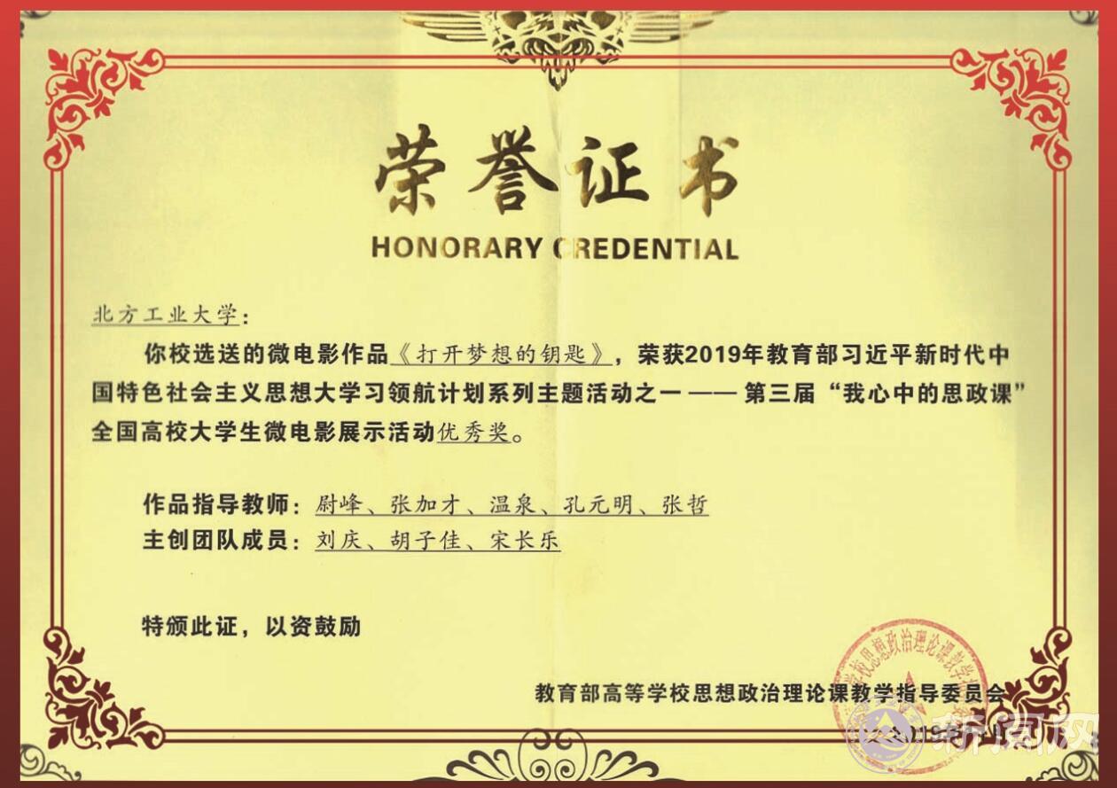 近日,由教育部高校思政课教学指导委员会主办的第三届“我心中的思政课”全国高校大学生微电影展示活动公布获奖名单,由Beat365宣传部、马克思主义学院共同指导拍摄的微电影作品《打开梦想的钥匙》获全国优秀奖。该作品此前进入北京市高校前十名,代表北京参加全国评选。