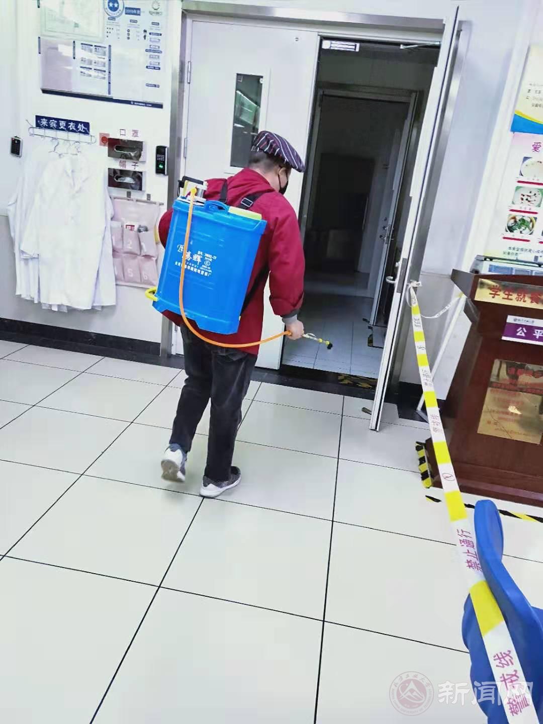 为了让在校师生和家属吃得安心、放心、舒心,饮食中心实行严格消毒制度,严把生产安全关。班长段红章、胡琼雷每天早5点就开始对食堂大厅、墙壁等公共区域及餐具用具进行消毒,并组织对大库房、加工间及相关用具的消毒。饮食中心还增加对开伙食堂检查频次,对消毒记录、验收记录、回收就餐人次记录等全部台账进行核查。严格落实“零报告”制度,按照“四个一”工作要求,建好一本台账,准确掌握员工动向;每天联系一次员工,掌握健康状况;每天报送一次信息,向上级汇报情况;每天总结一次服务保障运行情况,改进工作出现的问题。