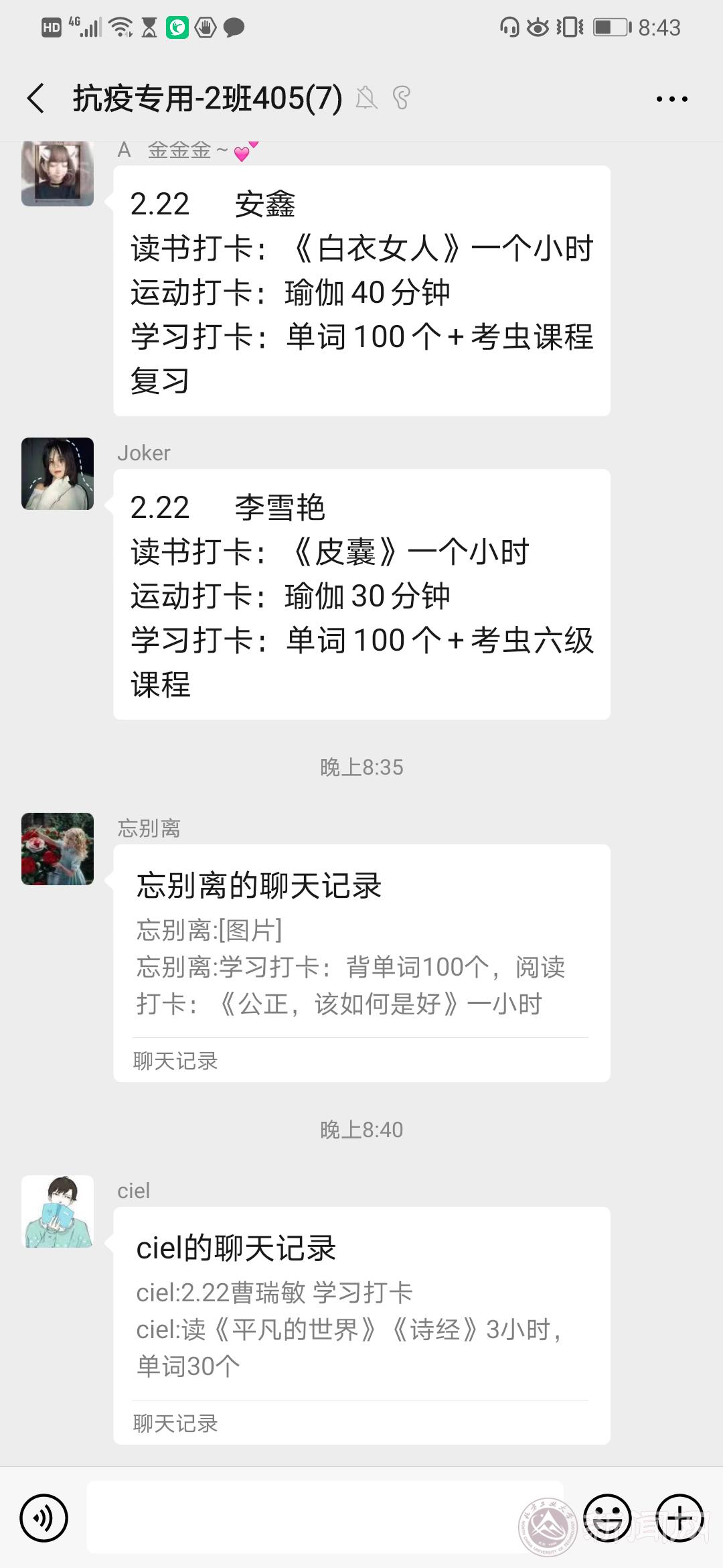 组织打卡促学,落实居家隔离