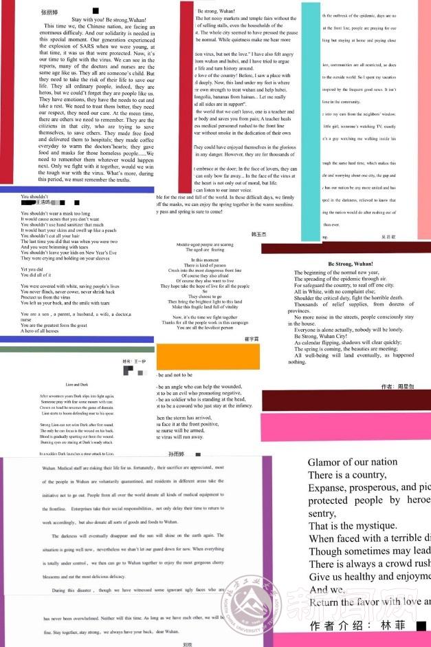 支部积极开展“Stay with you! Be strong, Wuhan!”抗击疫情主题英文征文活动,得到了全院学生的积极参与。经过前期原创作品的征集与海选,后期英语系评委老师的评审,活动已顺利结束,获奖作品充分彰显出同学们的爱国情怀和使命担当。