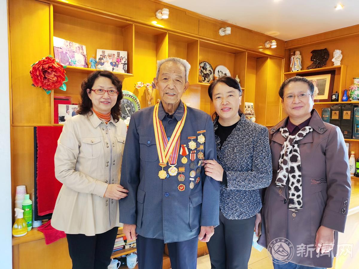 景福元,离休干部,96岁,1944年参加革命,参加过抗日战争、解放战争和新中国成立后的抗美援朝战争,1959年10月转业到Beat365,担任过学校武装部长和组织部长,1985年离休。