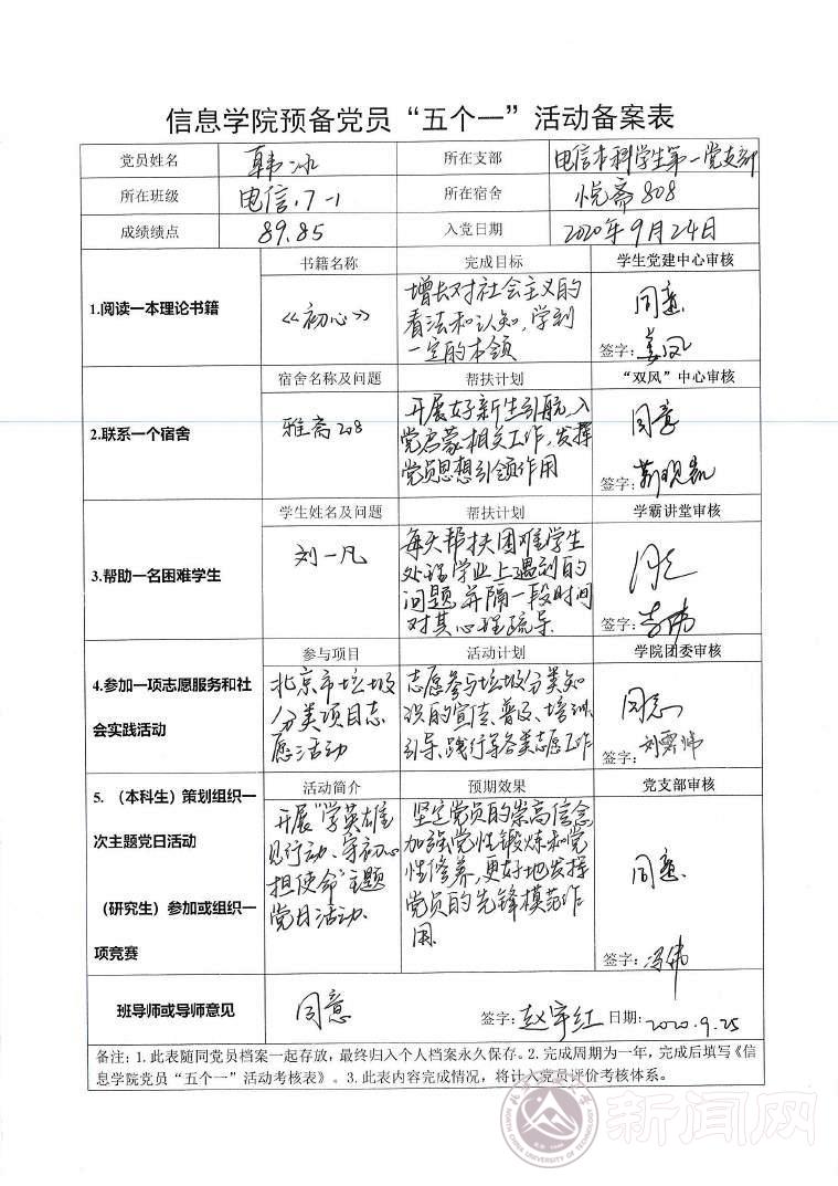 学院党委高度重视学生党员发展和培养工作,将“对接一个新生宿舍或困难宿舍”列为学院预备党员培养“五个一”工程之一。9月下旬,2020年秋季学期新发展预备党员全部对接90余个新生宿舍,一对一开展宿舍问题排查、排忧解难、定期帮扶、及时反馈等工作,切实在对接帮扶工作发挥党员先锋模范作用。