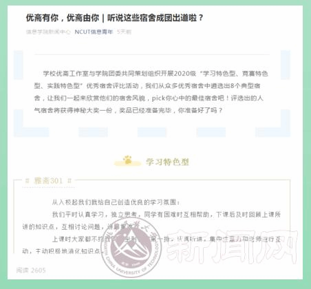 2021年4月,信息学院在前期“读一本励志书,开一个卧谈会,写一篇感想文”优斋读书计划的基础上,面向2020级全体宿舍征集优秀读后感,各宿舍积极响应、踊跃参加,共收到100余篇共计约10万字的读后感,最终遴选出了18篇特别优秀的感想。我们看到有同学从阅读中产生了共情,慷慨激昂诉说故事;也有同学从书中看见颓废的自己,落笔书写出自己的心得;还有同学仿佛醍醐灌顶,清晰描绘美好未来。为更广泛地传播同学们读书的所思所想,NCUT信息青年公众号每日推送一篇优秀文章“每日宿说”,促进读书计划的二次分享、深度分享。