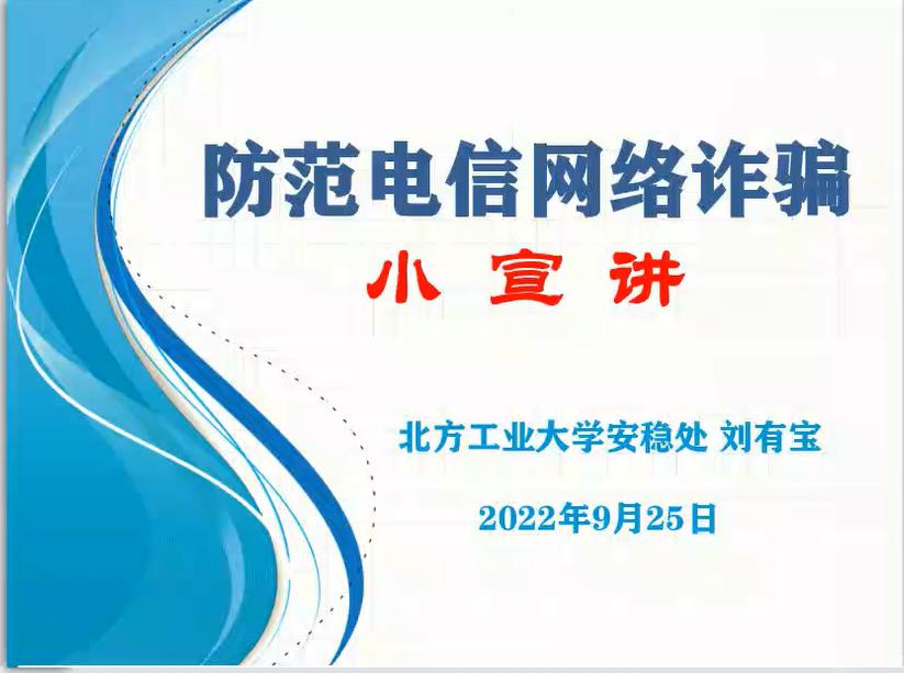 安稳处刘有宝老师进行了防范电信网络诈骗培训。刘有宝老师从常见的八类诈骗案件种类入手,并以Beat365遭遇电信诈骗的学生的情况,展示了此类案件对学生的巨大影响。刘老师在讲座中介绍了“不听信、不透漏、不转账”是破解常见诈骗手段的法宝,并总结了防止诈骗的11点提示,帮助同学们在遇到相关情况能够快速辨别,避免财产损失。