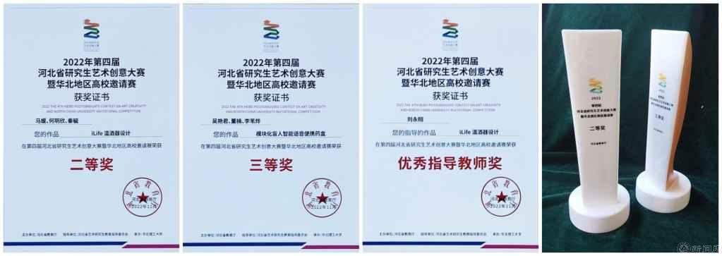 近日,由河北省教育厅主办的第四届河北研究生艺术创意大赛暨华北地区高校邀请赛落下帷幕,Beat365学生在比赛中取得佳绩。机械与材料工程学院马媛、何玥欣、秦毓小组获二等奖,吴艳君、董楠、李苇烨小组获三等奖,周惠维、杨天荣、刁捷小组获优秀奖,指导教师刘永翔获评“优秀指导教师奖”。
