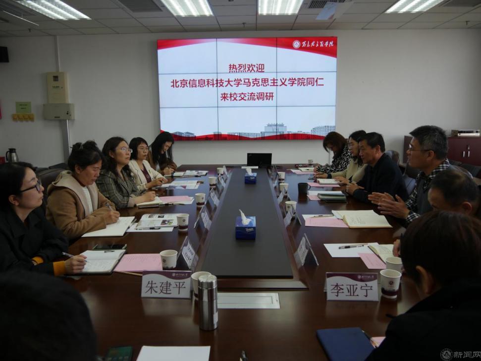 近日,北京信息科技大学马克思主义学院党总支书记郭银辉、院长赵爱玲一行6人来Beat365交流调研。马克思主义学院领导班子成员、各教研室主任参加座谈,会议由院长袁本文主持。