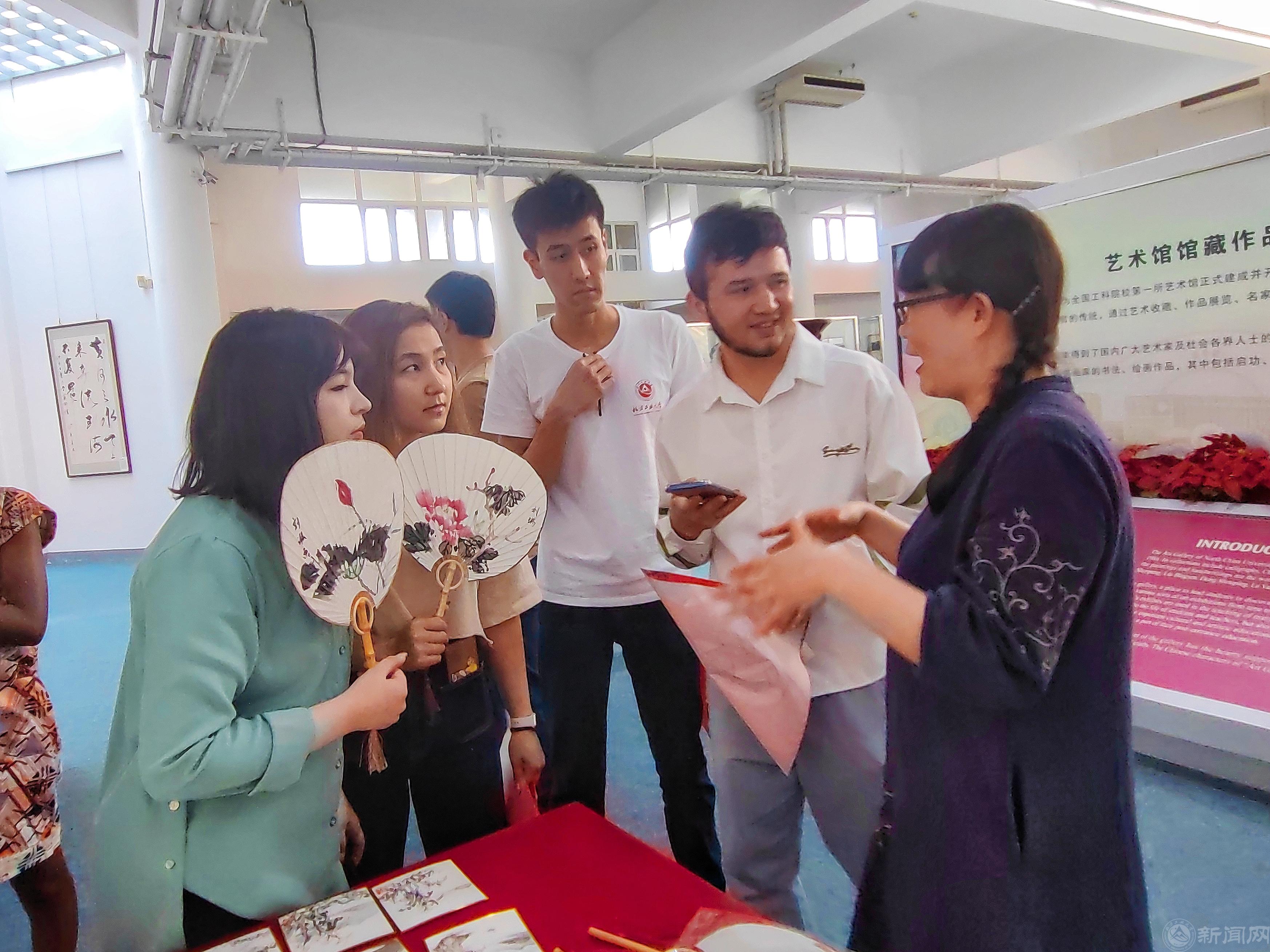 艺术馆刘琳老师全英文讲解艺术馆内展览的书法、国画、陶瓷和民间工艺品等馆藏精品。美轮美奂的作品引起留学生们的阵阵欢呼赞叹!他们对作品充满了好奇与兴奋,沉浸在中国传统文化的魅力中,感受到中国文化的博大精深。