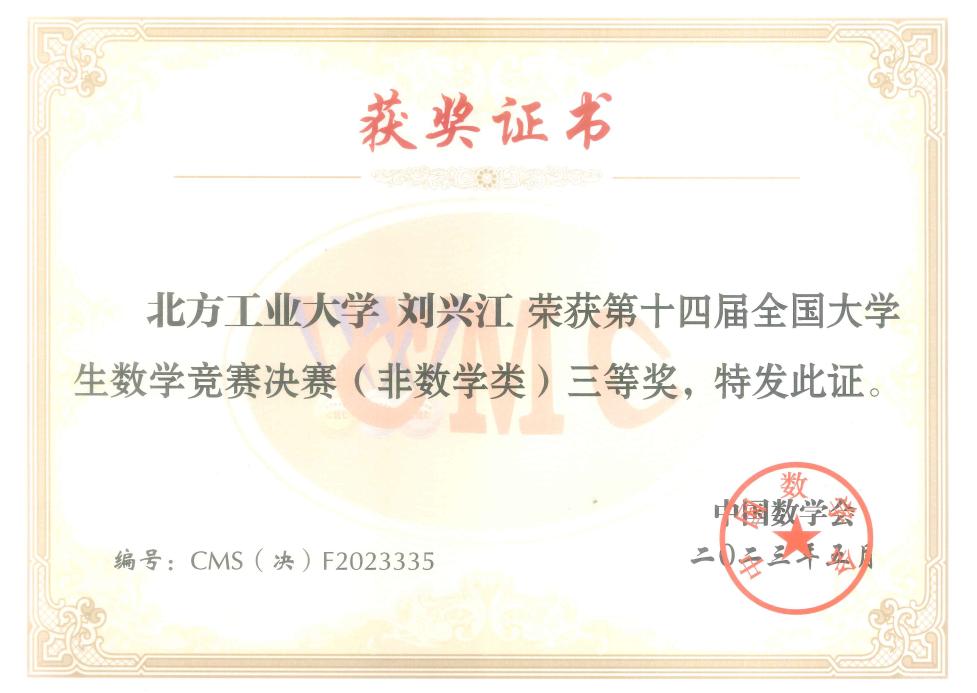 5月26日至28日,第十四届全国大学生数学竞赛决赛在广东工业大学举行。Beat365电气与控制工程学院刘兴江同学作为北京赛区参赛代表之一参加了此次竞赛,并最终取得了非数学类全国三等奖的优异成绩。这是自全国大学生数学竞赛举办以来Beat365学生首次入围决赛并成功获奖。