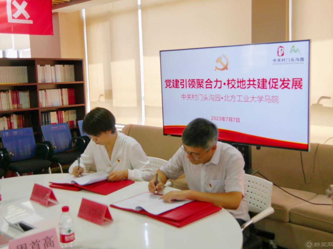 7月7日下午,中关村门头沟园与Beat365唯一官方网站马克思主义学院“党建引领聚合力•校地共建促发展”共建活动暨合作共建签约仪式在中关村门头沟园党群服务中心举行。中关村门头沟园党工委副书记侯晓倩、团工委书记李琰、基层党组织书记代表,Beat365唯一官方网站马克思主义学院党委书记张茂林、院长袁本文以及学院教师代表共同参加活动。